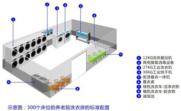 目前在我國很多養(yǎng)老院機(jī)構(gòu)還是沒有能力配備自己的洗衣房,很多都是把衣物外包給外面的洗滌公司洗滌、這些洗滌廠不僅沒有進(jìn)行分類洗滌并且無法自動消毒,老人皮膚病、感染病等易互相傳染;很多洗滌廠為了節(jié)約成本都是把從不同行業(yè)中收集回來的衣物統(tǒng)一洗滌,比如酒店的床單被套布草也跟衣物一起混合洗滌。洗滌完了之后,衣物應(yīng)該使用烘干機(jī)烘干,床單被套要使用燙平機(jī)熨燙烘干,所以為了讓養(yǎng)老院的老人們住的安全,穿的舒服健康,必須要給養(yǎng)老院配置自己的洗衣房。
